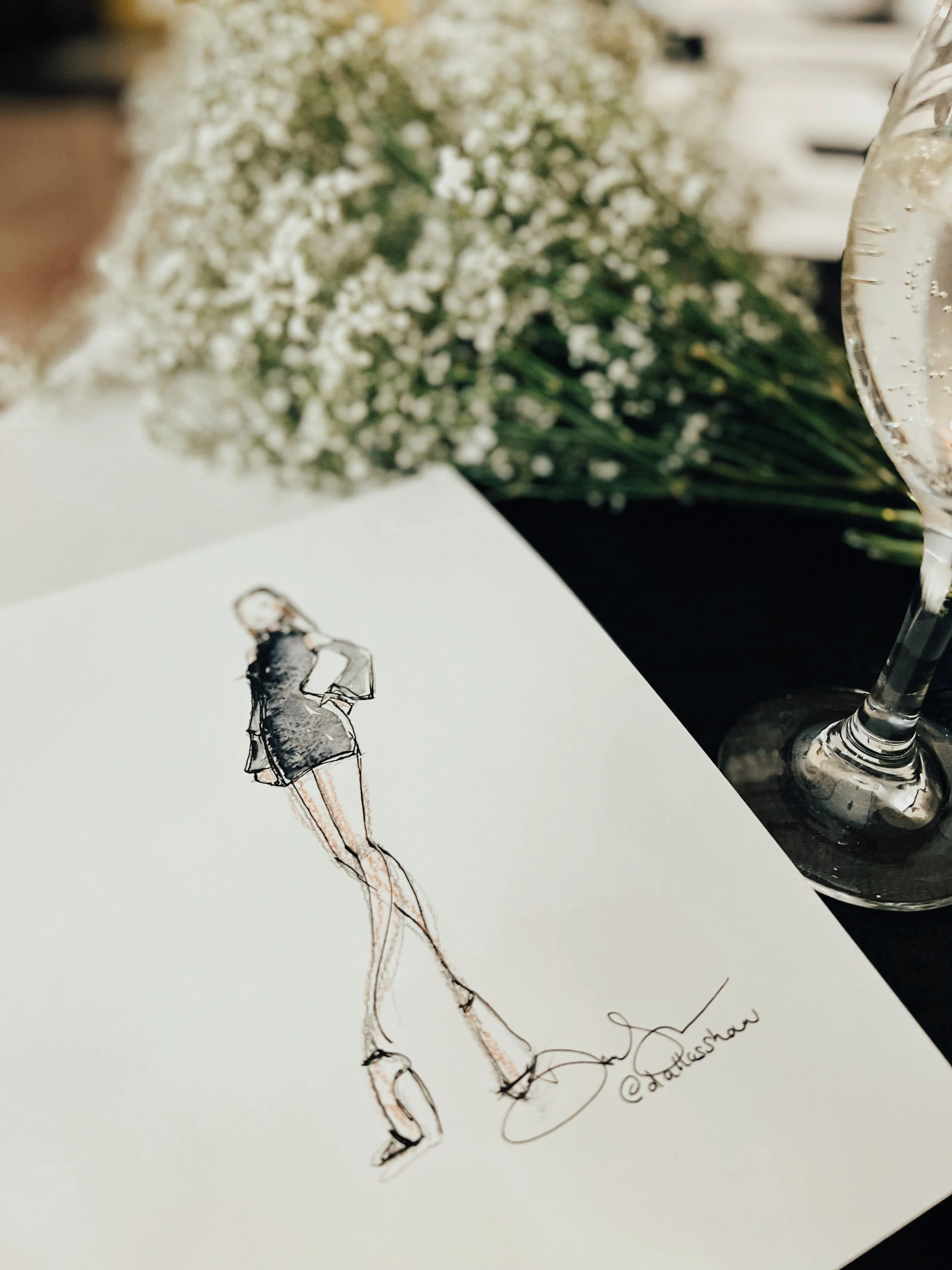 Live, 10-15 Minute Fashion Illustrations of your guests’ dresses.