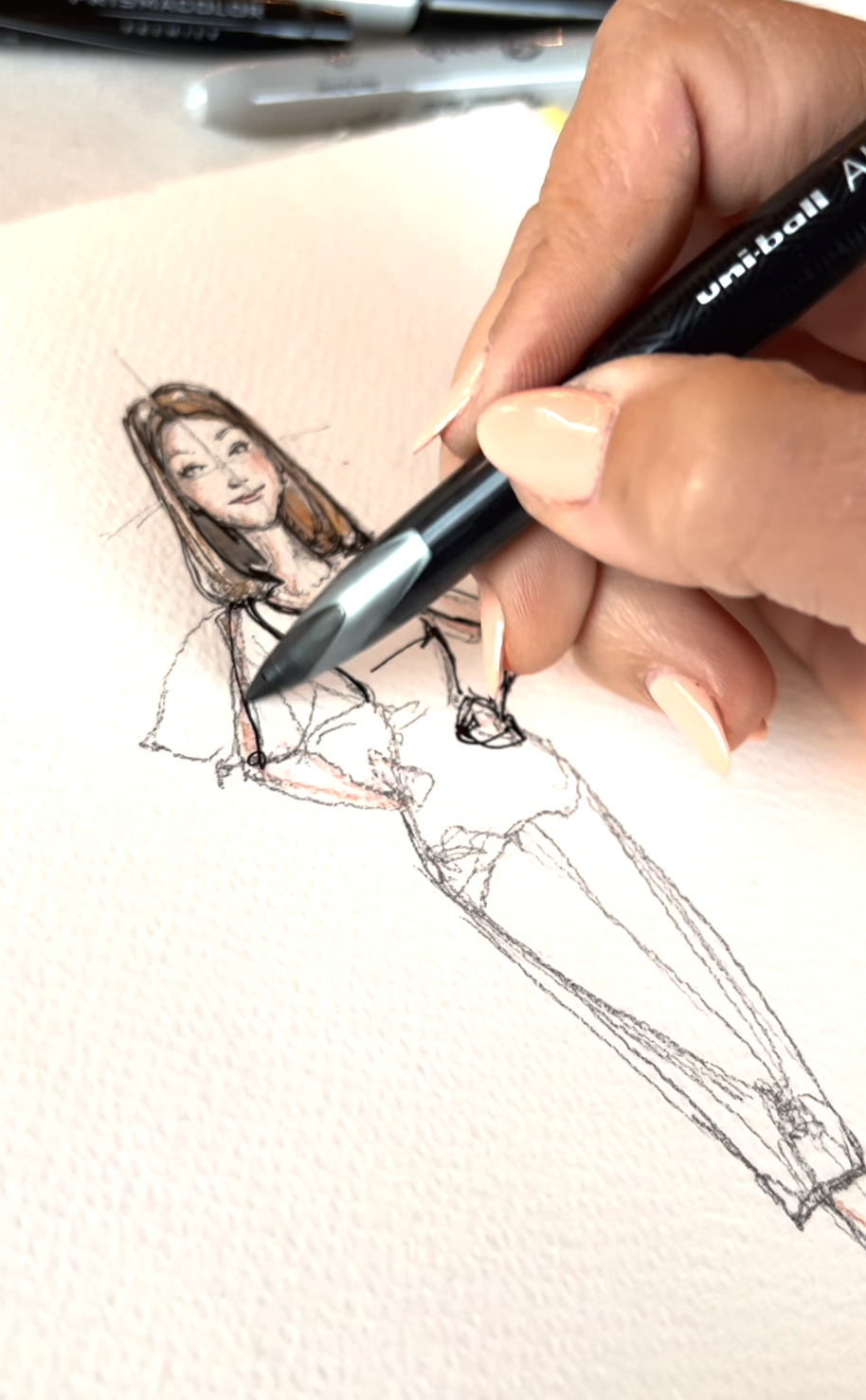 Using pencil, ink and only a fast touch of color allows me to get all of the guest’s details in a short amount of time.